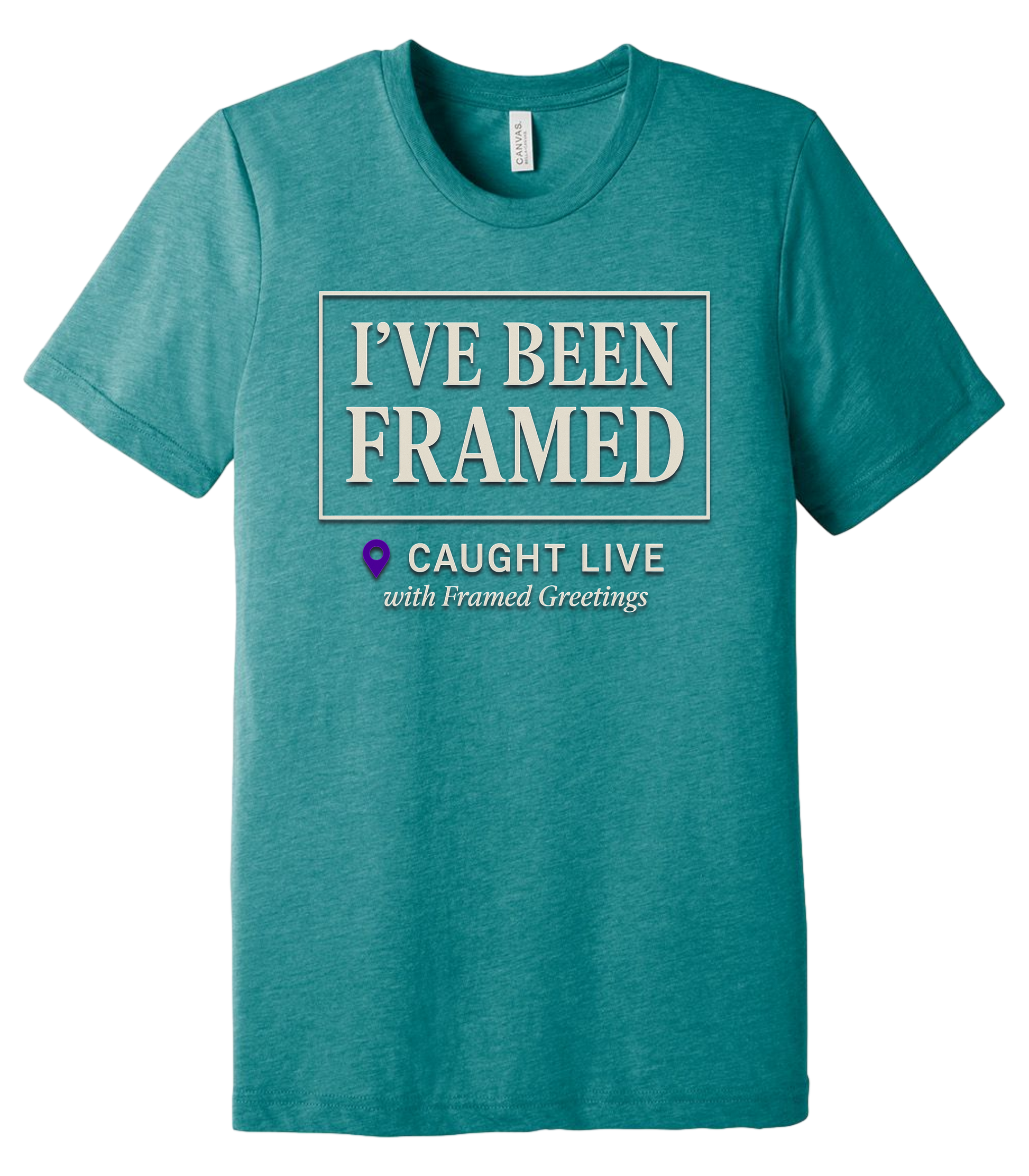 Featuring stacked serif text inside a clean gallery-style border, with the signature 📍CAUGHT LIVE badge and “with Framed Greetings” in italic microprint—it’s not just a shirt. It’s a moment in time.