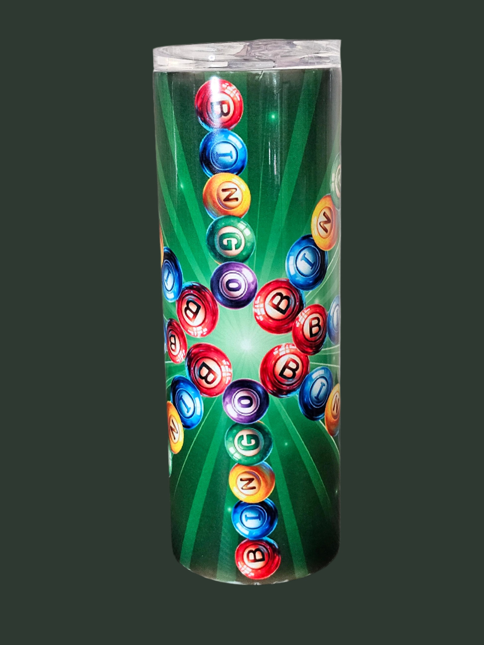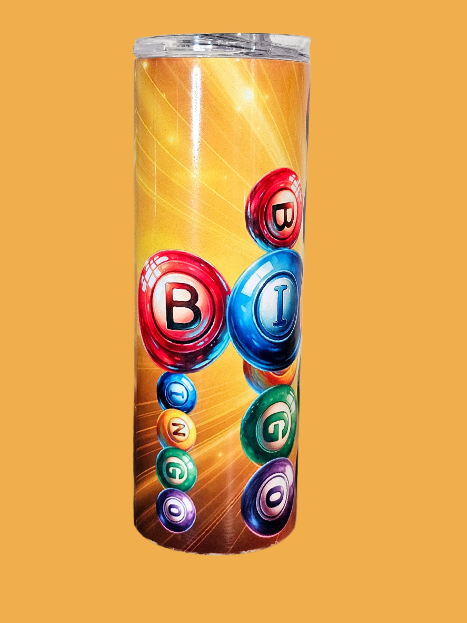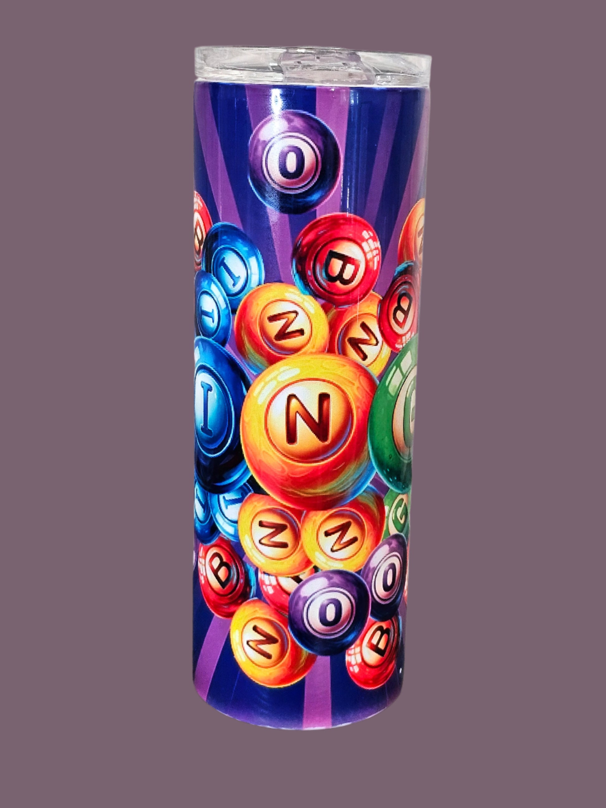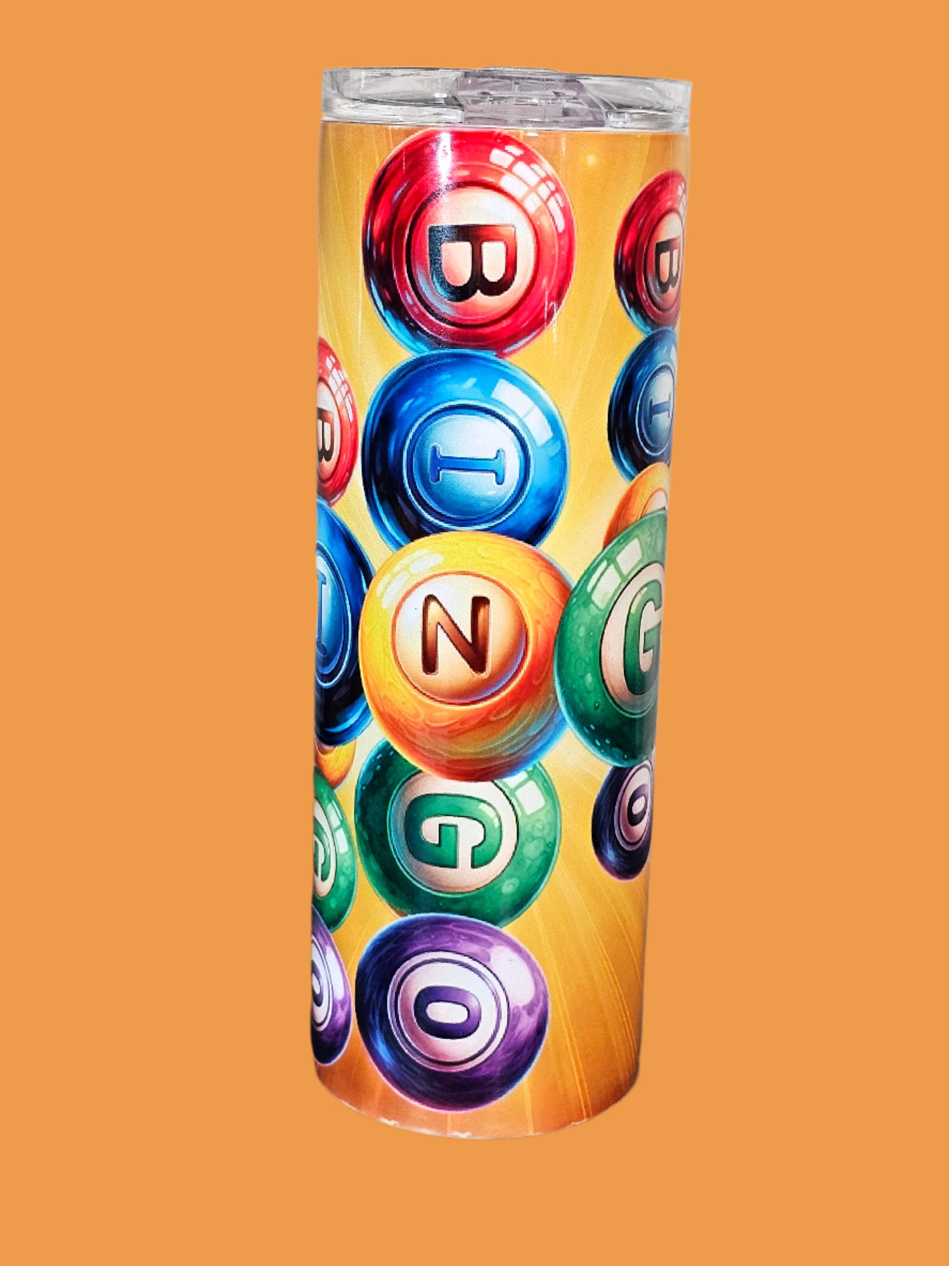 Let the good times roll with the Bingo Bash Tumblers — a vibrant collection of 20 oz stainless steel drinkware designed for bingo lovers, game night champs, and anyone who brings high energy and lucky vibes wherever they go. Each color variant is packed with personality and surrounded by dynamic, full-wrap graphics that celebrate the thrill of the game.