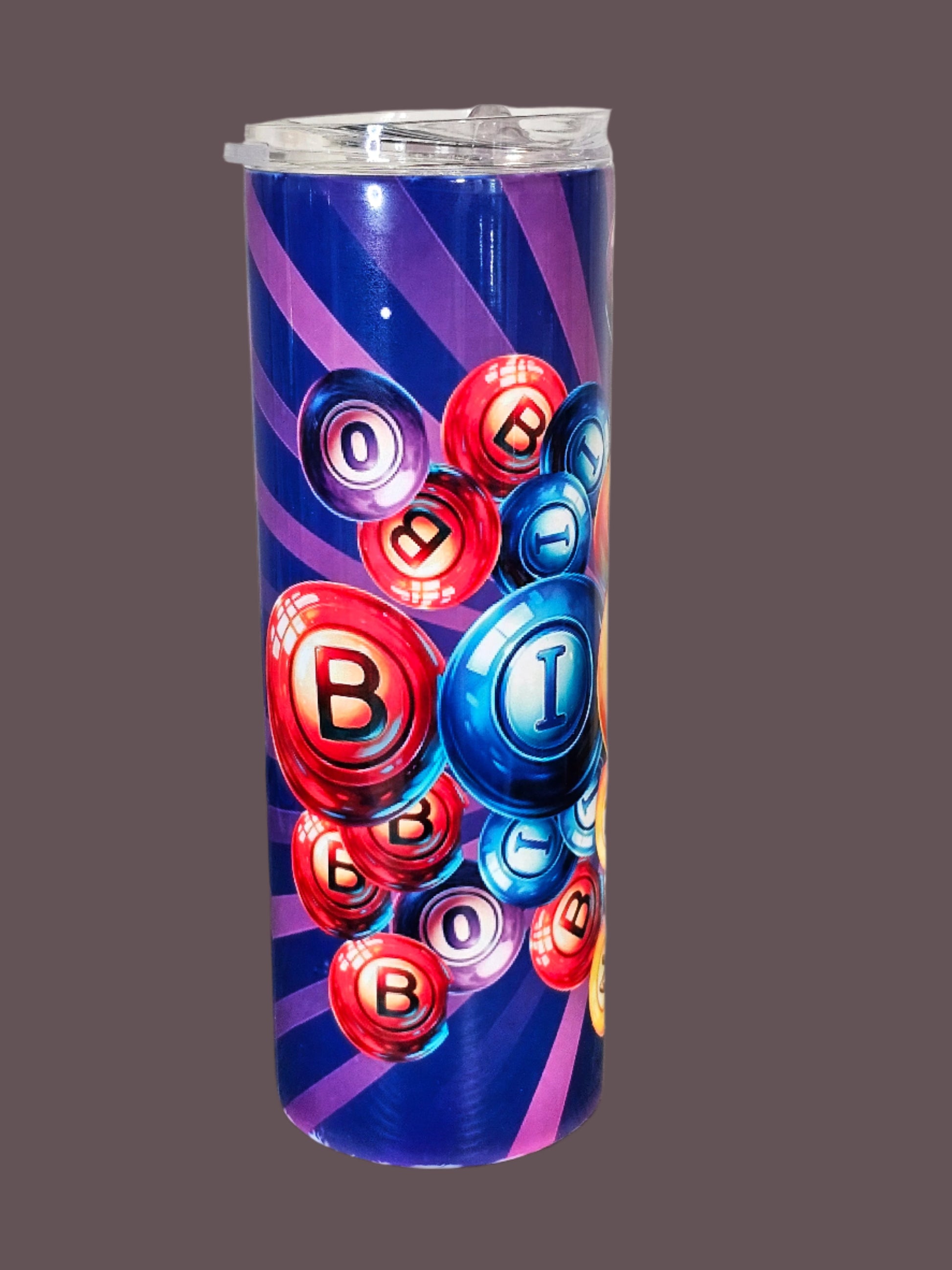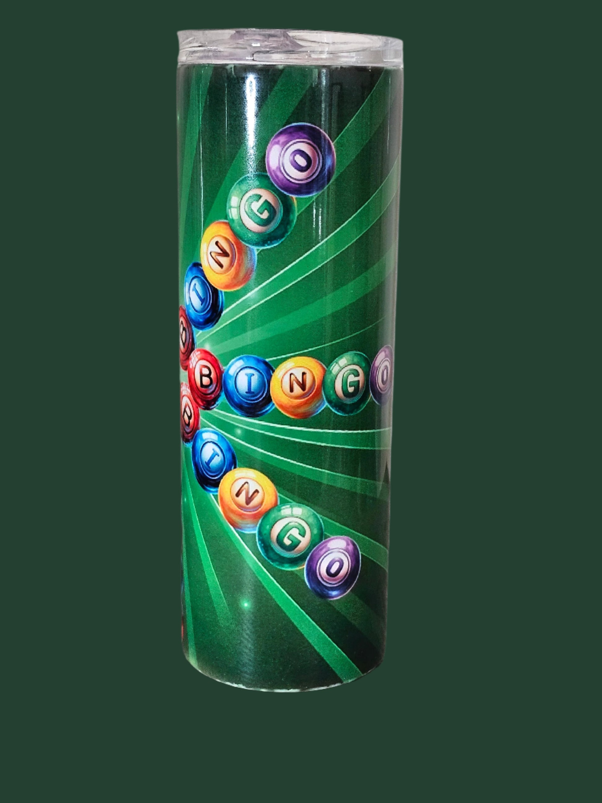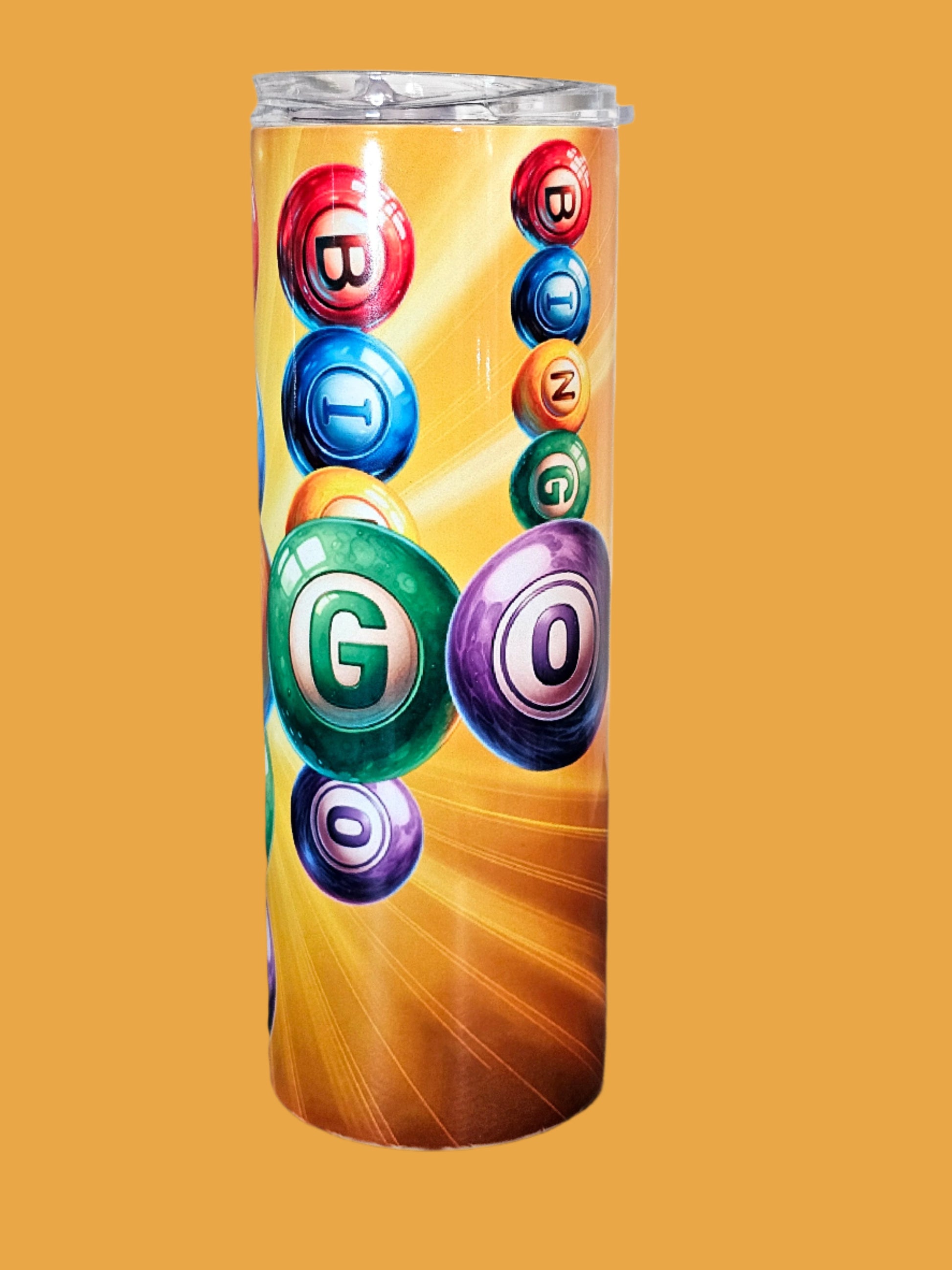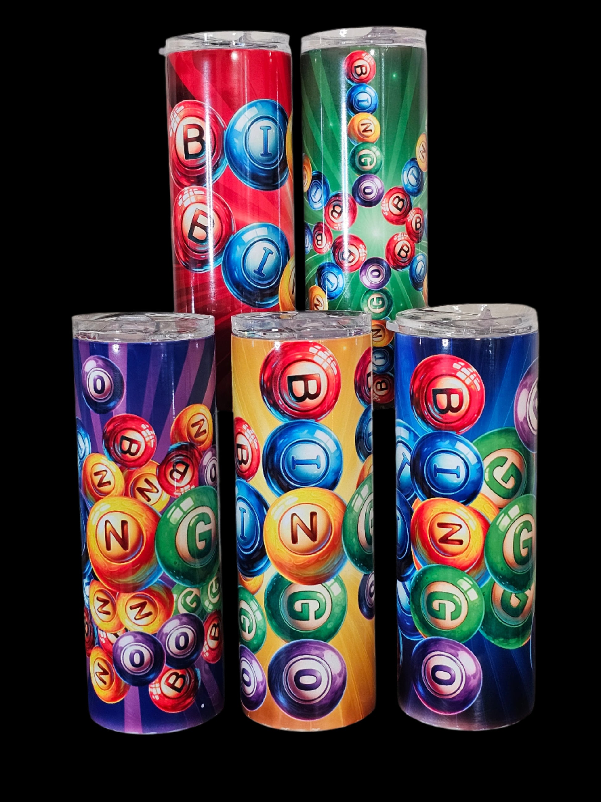 Let the good times roll with the Bingo Bash Tumblers — a vibrant collection of 20 oz stainless steel drinkware designed for bingo lovers, game night champs, and anyone who brings high energy and lucky vibes wherever they go. Each color variant is packed with personality and surrounded by dynamic, full-wrap graphics that celebrate the thrill of the game.