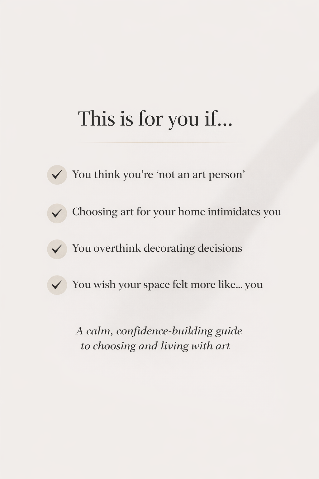 You’re Already an Art Person is a quiet, reflective digital art book created for people who love beautiful spaces—but have never thought of themselves as “art collectors.”